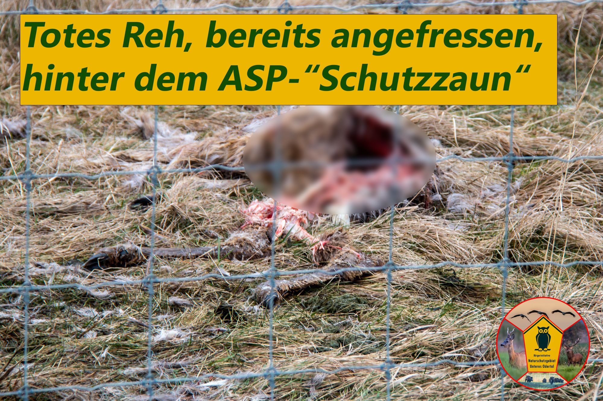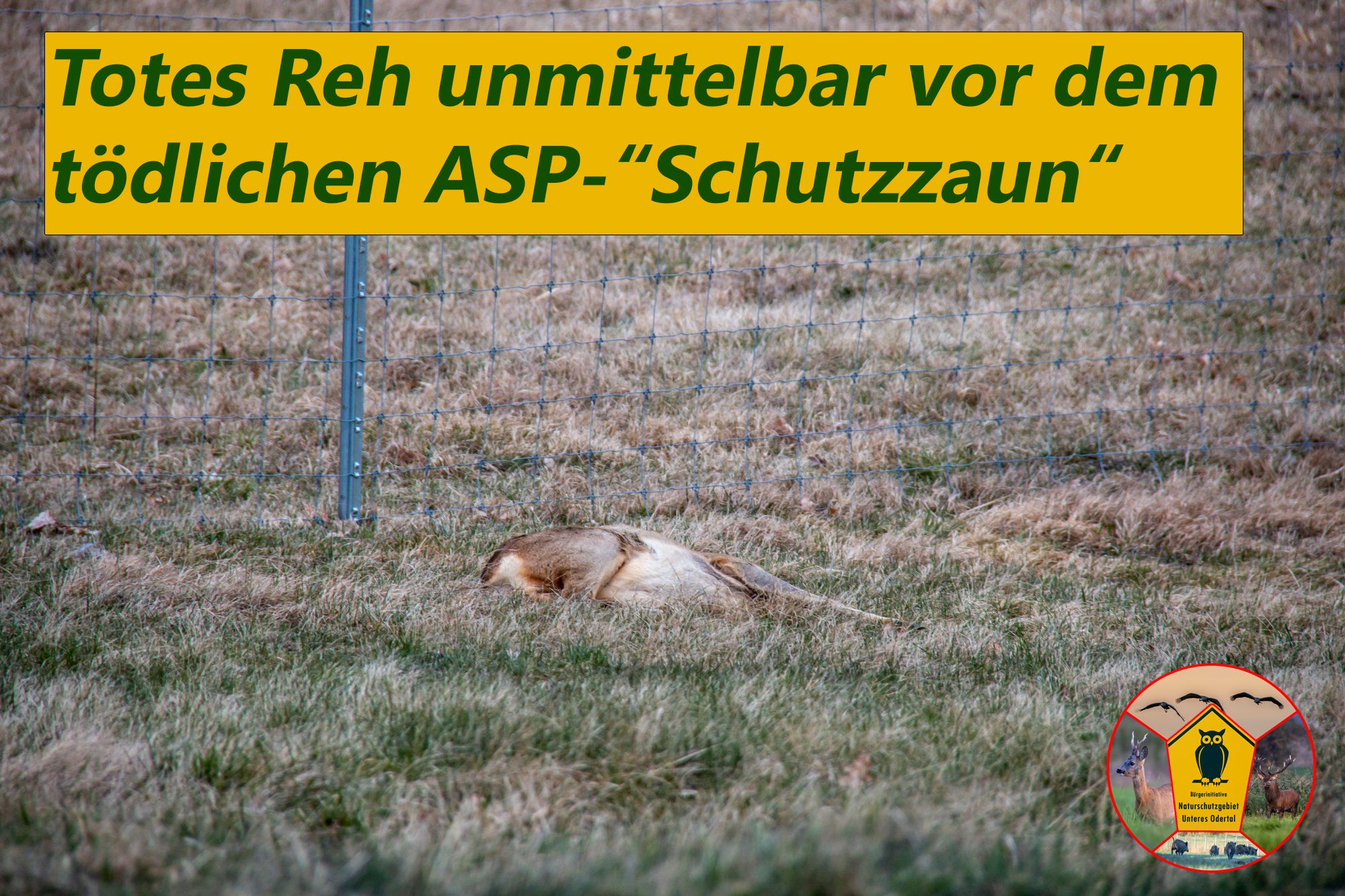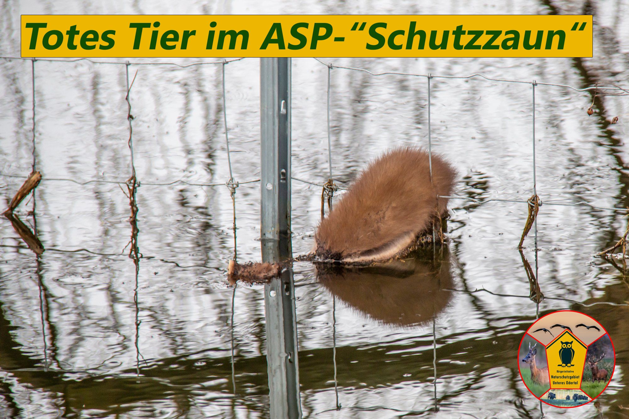 Home » Inhalte Die TötungWie durch den ASP-"Schutzzaun" Wildtiere getätet werden Publiziert am: Mittwoch, 20. August 2025 (246 mal gelesen) Copyright © by Bürgerinitiative Unteres Odertal [ Zurück ]