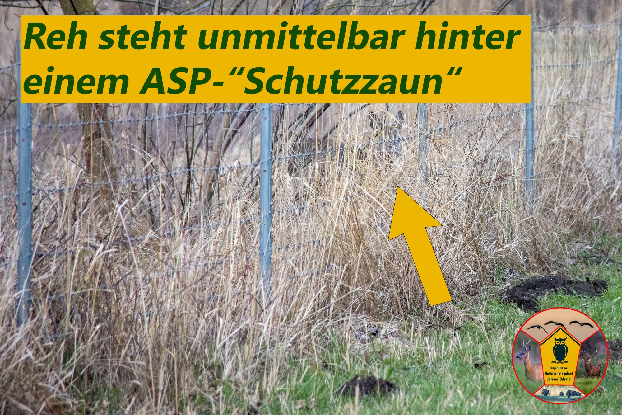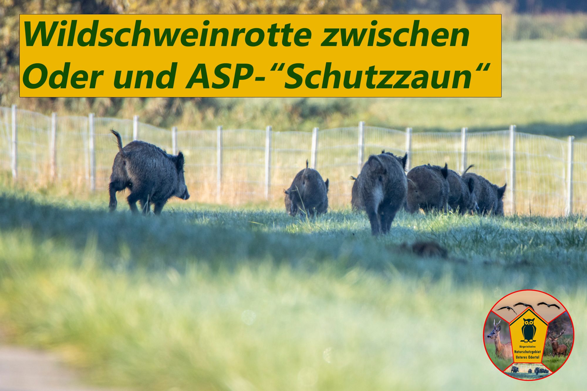 Home » Inhalte ZaunirrsinnASP-"Schutzzäune" und ihre eingesperrten Wildtiere Publiziert am: Mittwoch, 20. August 2025 (249 mal gelesen) Copyright © by Bürgerinitiative Unteres Odertal [ Zurück ]